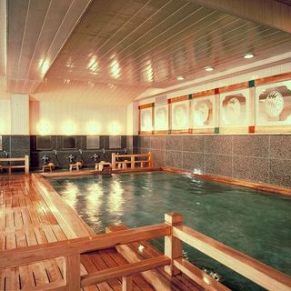 ![]() 檜造りの大浴場「朱雀の湯」。浴槽は朝夕で男女入れ替わりです。 |